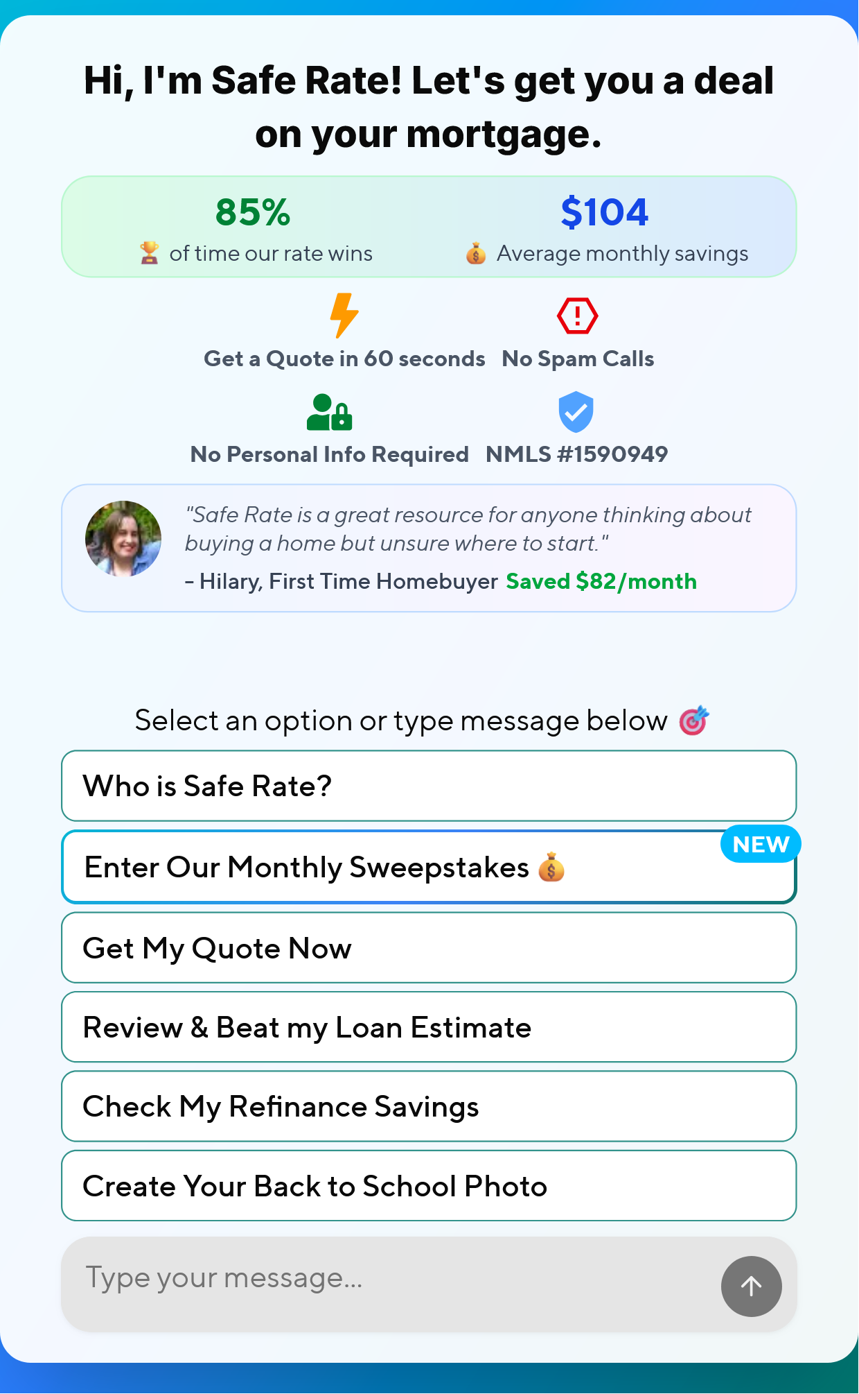 Safe Rate's conversational AI makes it so that even a 1-person broker owner can engage and convert mortgage shoppers at rates that exceed those of the best digital lenders today. And your AI can engage users on social media, LLMs, text and more!